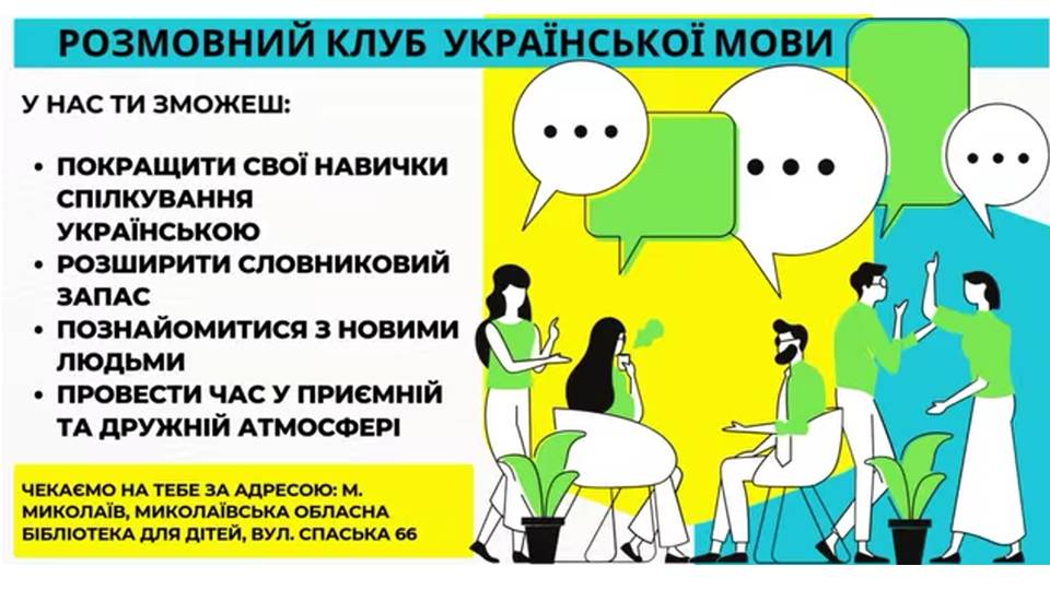 Миколаївська обласна бібліотека для дітей запрошує вас до розмовного клубу української мови!