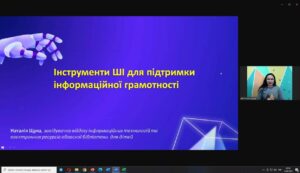 Учасники заходу мали можливість зануритися у світ новітніх технологій і дізналися, як штучний інтелект може стати ефективним інструментом у щоденній роботі бібліотекаря. Ознайомилися з прикладами впровадження ШІ в бібліотеках, простими інструментами для створення презентацій, візуального контенту, підтримки інформаційної грамотності та навіть з використанням ШІ для емоційного добробуту.