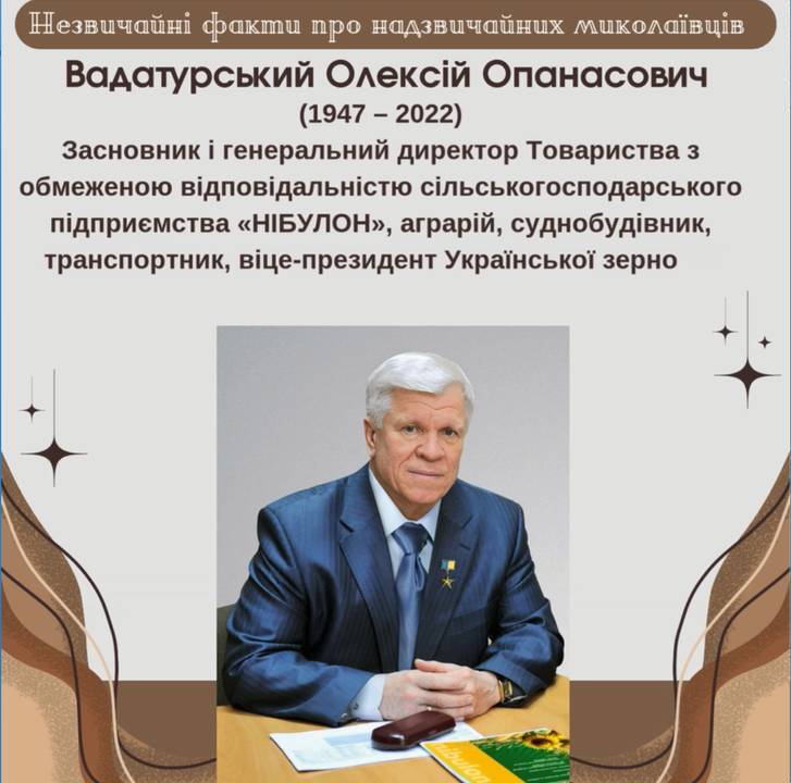 Більше дізнатися про Вадатурського Олексія Опанасовича можете на сайті Миколаївської обласної бібліотеки для дітей
