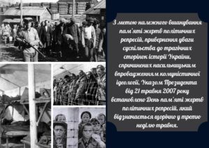 День памʼяті жертв політичних репресій… У цей скорботний день наші серця сповнені болем і гірким спомином про трагічні сторінки історії. Мільйони українських душ були зламані жорстокими репресіями. Арешти, що сіяли страх, тортури, що кришили тіла й душі, розстріли, що обривали життя на злеті, безжальні депортації, що розлучали з рідною землею…
