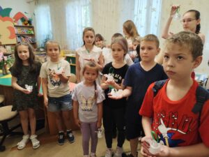 Особливим, елементом акції стала фотосушка з ілюстраціями талановитої української художниці Ольги Арт (Olga Art). Її роботи – це не просто малюнки, це крик душі, відображення болю та суму за зруйнованим дитинством наших дітей. Кожна лінія, кожен колір сповнені гіркоти та безсилля перед лицем цієї нелюдської агресії.