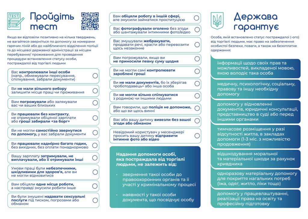 Пропонуємо вам ознайомитися з пам’яткою на тему протидії торгівлі людьми— коротко, доступно й важливо.