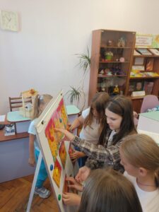 Для вихованців миколаївської гімназії №7 це було перше знайомство з чарівною мисткинею. Кожна її картина викликала безліч позитивних емоцій та посмішок. А як цікаво було складати власну розповідь за картиною художниці, знаходити відмінності між двома однаковими картинами і малювати свої картини у стилі Євгенії Гапчинської.