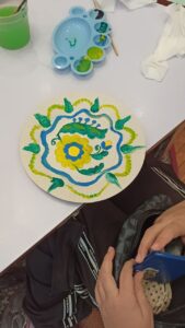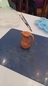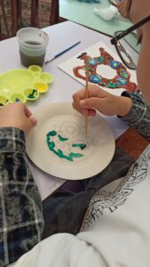 Цікавим доповненням нашого творчого спілкування був майстер клас з ліплення глиняного глечика та розпису паперових тарілок опішнянськими візерунками.