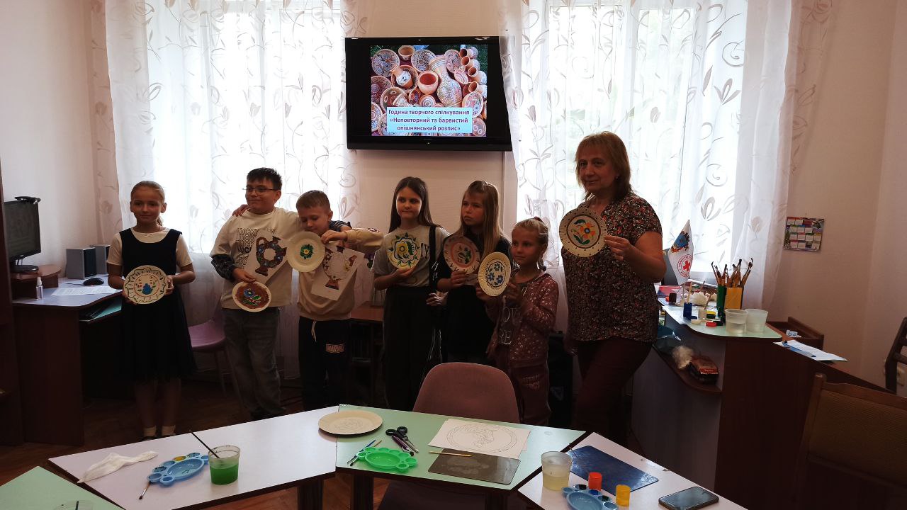 Цікавим доповненням нашого творчого спілкування був майстер клас з ліплення глиняного глечика та розпису паперових тарілок опішнянськими візерунками.