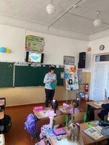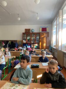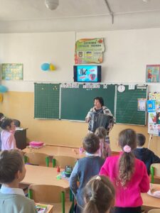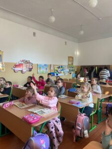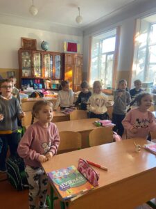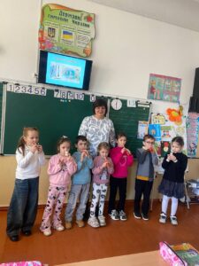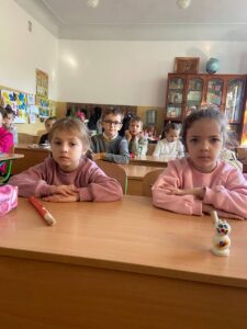 Наше знайомство з «першачками» миколаївської гімназії №13 почалося з розповіді про музику і музичні інструменти. Говорили про різновид музичних інструментів, особливості їх звучання , історію походження. До того ж малеча мала змогу потримати в руках і навіть зіграти не деяких з інструментів. Ігри «Вгадай по звуку музичний інструмент» та «Відтвори звук музичного інструменту » допомогли дітям запам’ятати якомога більше музичних інструментів.
