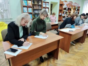 Сьогодні був особливий день. У нашій бібліотеці панувала тиша, сповнена зосередженості та тепла, адже ми всією родиною — і бібліотекарі, і наші найменші друзі — долучилися до написання Всеукраїнського радіодиктанту національної єдності – 2025.