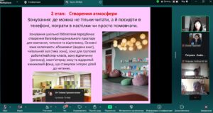 Учасникам було представлено поєднання теоретичних і практичних напрацювань на тему «Рекламна діяльність бібліотек закладів освіти». Під час занять обговорили сучасні підходи до комунікації з читачами, можливості промоції бібліотеки в цифровому середовищі, а також дієві інструменти популяризації книги та читання.