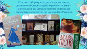 Через слово Лесі Українки бібліотека запрошує дітей і підлітків відчути силу української культури та усвідомити її значення в сучасному світі. Приходьте за натхненням — воно чекає на вас між сторінками книг.