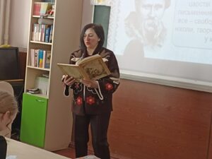 Працівники Миколаївської обласної бібліотеки для дітей завітали до учнів 6 класу Миколаївської гімназії №25 і провели літературну композицію “Тарас Шевченко – велич духу”. Під час зустрічі гімназисти відкрили для себе нові цікаві сторінки з життя поета, дізналися більше про його творчість та значення для українського народу. Діти із задоволенням читали поезію Тараса Шевченка, відчуваючи силу і красу його слова. Наприкінці заходу всі охочі змогли перевірити свої знання у вікторині, яка пройшла жваво та цікаво. Такі зустрічі допомагають молодому поколінню краще пізнавати нашу історію, культуру та духовну спадщину.