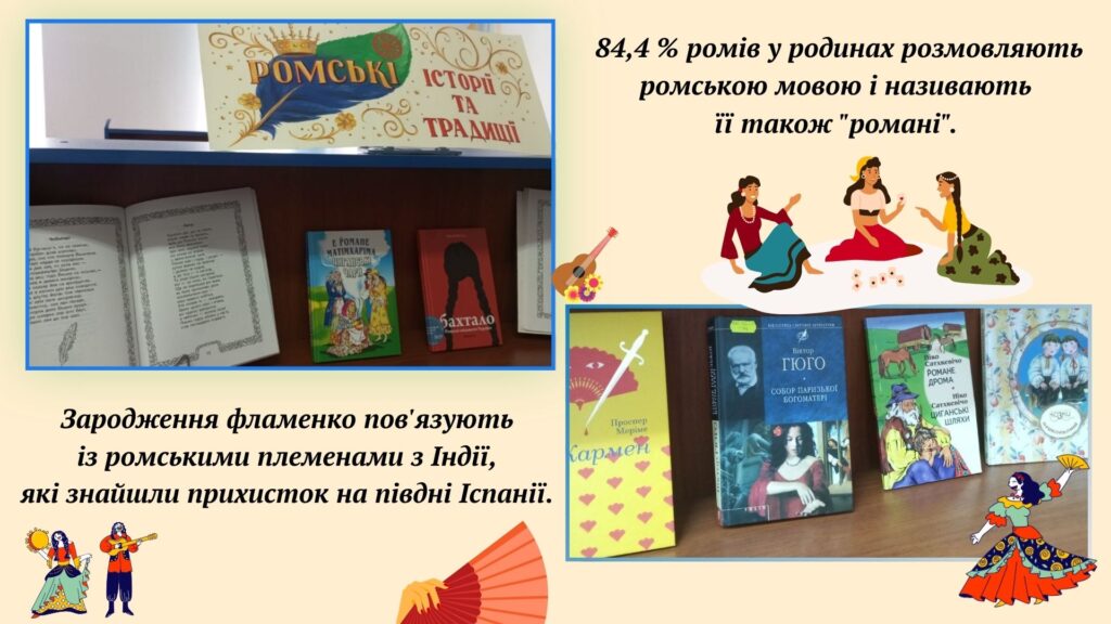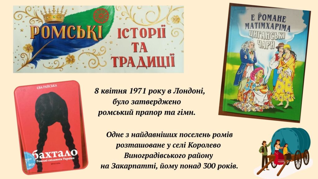 8 квітня відзначається Міжнародний день ромів — день, який нагадує про багату культуру, історію та внесок ромського народу у світову спадщину. Це важлива нагода не лише вшанувати ромську спільноту, а й більше дізнатися про її традиції, звичаї та історію. З цієї нагоди запрошуємо відвідати книжкову виставку «Ромські історії та традиції», де представлені видання, що відкривають глибину ромської культури, її самобутність і різноманіття. Роми є невід’ємною частиною українського суспільства, і їхня культура — це яскравий елемент нашого спільного різноманіття. Повага, взаєморозуміння та відкритість — це те, що об’єднує нас і робить сильнішими 💙💛