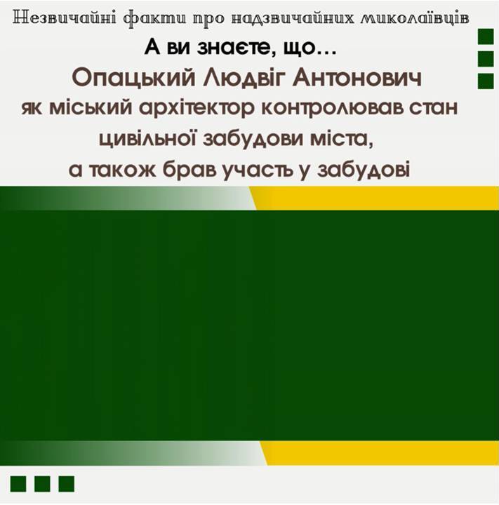 Рубрика «Незвичайні факти про надзвичайних миколаївців» продовжує знайомити вас із цікавими епізодами та незвичайними фактами із життя відомих миколаївців. Більше дізнатися про Опацький Людвіг Антонович можете на сайті Миколаївської обласної бібліотеки для дітей