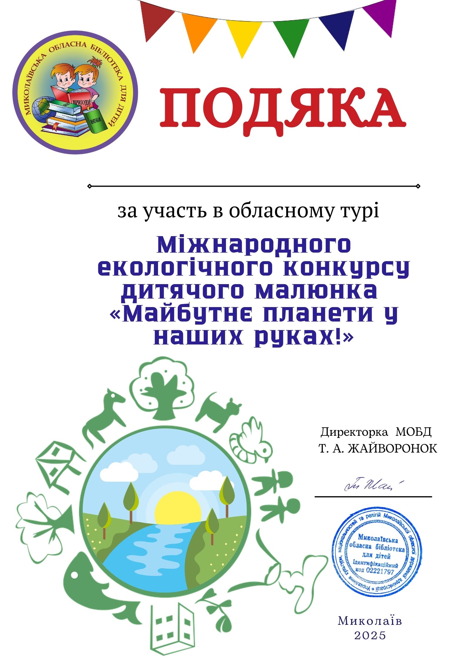 Визнати переможцями обласного туру Міжнародного екологічного конкурсу дитячого малюнка «Майбутнє планети у наших руках!»
