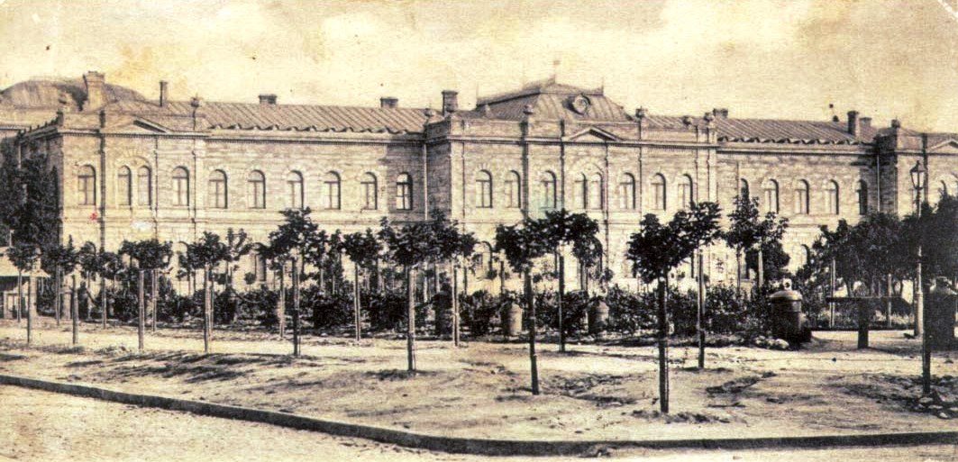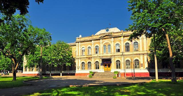 Маріїнську жіночу гімназію було засновано у 1863 році, і спочатку вона розташовувалася в пристосованих приміщеннях морського відомства – колишнього Будинку Штабу флоту. Протягом 1890-1892 років за проєктом міського архітектора Є. А. Штукенберга у кварталі між вулицями Адміральською, Бульварною (нині Миколи Аркаса) та Нікольською (нині Вадима Благовісного) було побудоване спеціальне приміщення для Маріїнської жіночої гімназії, збудоване за всіма вимогами педагогічної науки. Це була одна з найбільших споруд, створених у той період: по фронту вона займає майже всю ширину кварталу.
