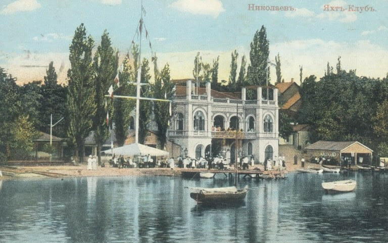 12 серпня 1887 року відбулися збори з приводу відкриття в Миколаєві річкового яхт-клубу. Фактичне відкриття яхт-клуб святкував 7 травня 1889 року. Для будівництва гавані яхт-клубу у 1895 році Морським міністерством було відведено берегову ділянку в Спаському урочищі. Тут були побудовані пристань і три відкритих дерев’яних павільйони, які поступово перетворили на закриті будівлі.