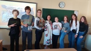 До Дня українського козацтва завітали до п’ятикласників Миколаївської гімназії №13. Разом знайомилися з головними символами козацької влади — булавою, бунчуком, литаврами. Діти відкрили для себе нові імена славних козаків — Іван Сулима та Іван Виговський. З азартом грали в гру «Вгадай та збери слово»: згадали улюблену страву козаків (куліш), музичний інструмент (кобза), і, звісно, без …