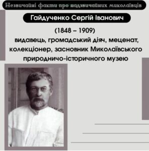 Рубрика «Незвичайні факти про надзвичайних миколаївців» продовжує знайомити вас із цікавими епізодами та незвичайними фактами із життя відомих миколаївців. Більше дізнатися про Гайдученка Сергія Івановича можете на сайті Миколаївської обласної бібліотеки для дітей Гайдученко Сергій Іванович