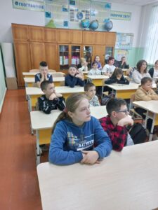 До Дня українського козацтва завітали до п’ятикласників Миколаївської гімназії №13. Разом знайомилися з головними символами козацької влади — булавою, бунчуком, литаврами. Діти відкрили для себе нові імена славних козаків — Іван Сулима та Іван Виговський. З азартом грали в гру «Вгадай та збери слово»: згадали улюблену страву козаків (куліш), музичний інструмент (кобза), і, звісно, без …